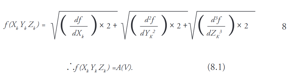 Claramente el modelo (8) es un ejemplo de constructivismo. Sin embargo, su estructuralismo se ajusta al aumento de sus derivadas debido al volumen del hexaedro o cuerpo regular (Martínez Costa 2019). Al retomar la igualdad (8.1), la función f en tres dimensiones corresponde al área de un cubo en términos del volumen, que finalmente se denota por la expresión matemática (8). Analizando la expresión (5) en términos de u, es claro afirmar que el área del cuerpo se modela mediante una única variable y que matemáticamente se representa como: