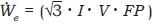 (12)Con la caída de presión total en el ventilador es posible estimar el flujo, la potencia mecánica y la potencia eléctrica del motor. Para esta última, se consideran los datos de placa del motor eléctrico, teniendo un factor de potencia de 0.89 y una eficiencia de motor del 96%. La potencia eléctrica, We, para un motor trifásico se obtiene como: