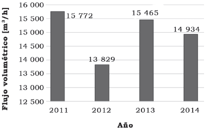 El acoplamiento del ventilador de tiro forzado analizado en este trabajo se encuentra físicamente localizado fuera de una caldera de vapor en una planta termoeléctrica; dicho acoplamiento ha presentado un déficit de manera continua en el flujo de aire. Así, en este trabajo de investigación se proponen ciertas modificaciones para aumentar el flujo de aire, además, se asegura que el ventilador no presente daños por vibración debido a los cambios en el diseño. Cabe mencionar que el acoplamiento consiste en dos ventiladores idénticos. Inicialmente, el flujo total de los ventiladores a plena carga (100%) era de 17 612 m3/min, con una presión estática en la descarga de 6.9 kPa, acorde con el desempeño de la caldera. De acuerdo con registros efectuados del flujo de aire en los ventiladores, es como se identificó el déficit de flujo. En la figura 1 se muestra el historial del comportamiento de flujo volumétrico del conjunto de ventiladores en los últimos años; se puede apreciar claramente un déficit de flujo respecto al valor de diseño, disminuyendo notablemente desde el año 2011 con respecto al diseño original.
