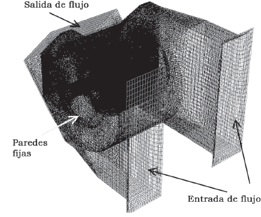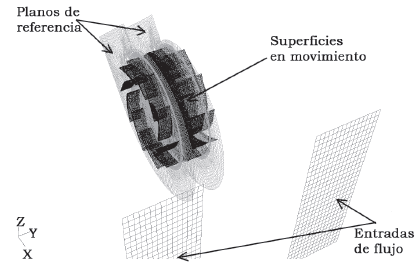 (17)La figura 7 muestra las superficies seleccionadas para la entrada y salida de flujo. Las dimensiones del rotor con las modificaciones realizadas han sido definidas previamente en la figura 4.
