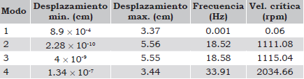 En la tabla 5 se evidencia un resumen de los resultados del análisis modal del rotor, además se describe cada uno de los modos de vibración presentes en el modelo.