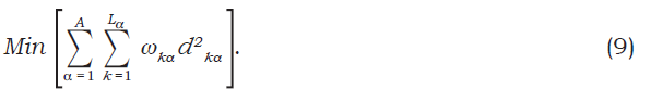 La optimización como tal se obtiene matemáticamente. Si el vector respuesta [x1, x2, x3 …, xn] kα es el mejor dentro de Rkα, y dkα es la distancia desde el óptimo común [x1, x2, x3 …, xn] kα, la solución será obtenida mediante la expresión: