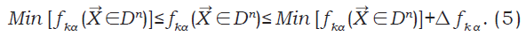 Donde Δ f kα es un error asignado que permite ajustar el tamaño de la región de respuesta. Una solución óptima o satisfactoria suele encontrarse en dicha región Rkα.