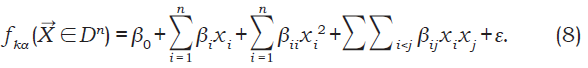 O bien, si la interacción entre variables existe, se usa el modelo de segundo orden con la forma siguiente: