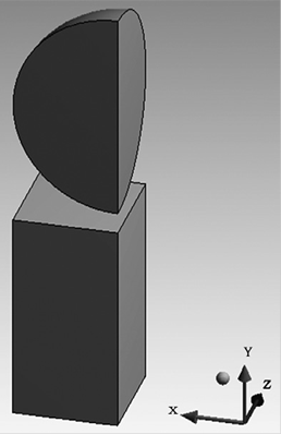 Se utilizó la doble simetría para una placa rectangular completa de aleación de aluminio con dimensiones de 1.0 mm × 1.0 mm × 1. 0 mm, la cual se fijó en su parte inferior, y en la superficie superior fue impactada por la cuarta parte de una esfera de acero de 1 mm de diámetro (figura 1) a una velocidad de 50 m/s en dirección perpendicular. Ambos materiales se asumieron como isotrópicos. A su vez, la placa presentó un comportamiento de endurecimiento bilineal isotrópico (bilinearisotropic hardening) (Miao et al., 2009). Las propiedades mecánicas aplicadas al modelo se presentan en la tabla 1.