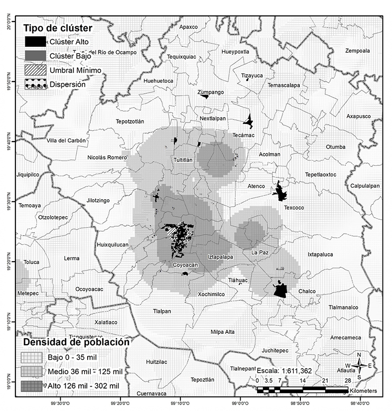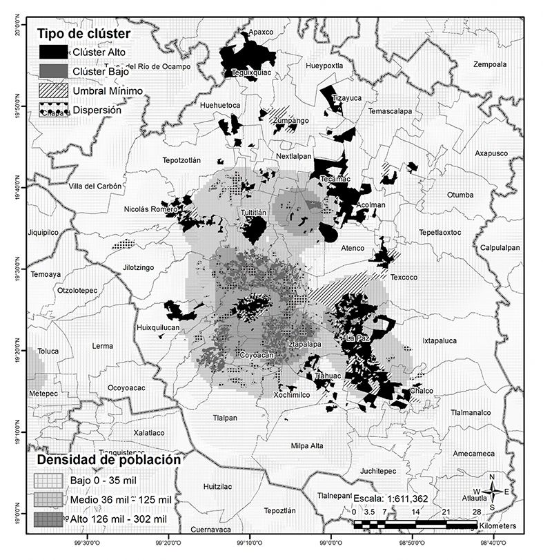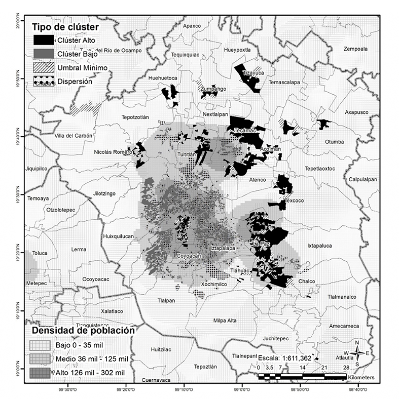 Así pues, identificar el patrón de configuración espacial que presenta la ZMVM, mediante las actividades económicas analizadas, ha sido un avance conveniente para identificar el tipo de segregación urbana. Bajo la deducción adicional de que la existencia de dichas aglomeraciones se caracteriza por la concentración espacial de beneficios urbanos, que favorecen inicialmente a la población cercana y subsecuentemente a la población con mayor capacidad de movilidad y accesibilidad, de forma similar a la indivisibilidad de los elementos que conforman la funcionalidad y eficiencia de las economías de aglomeración.