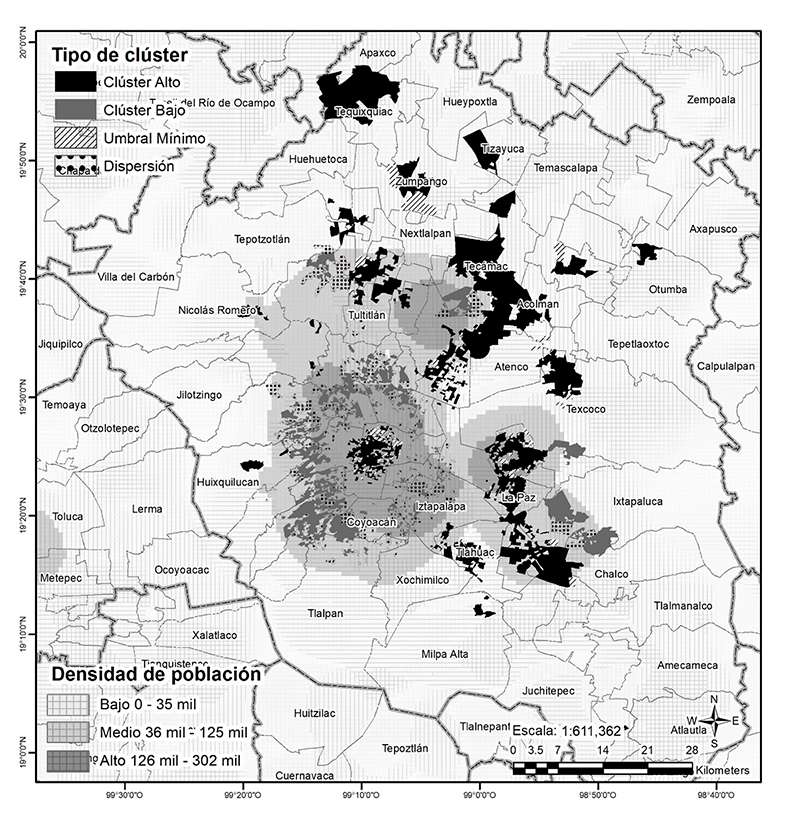¿Qué tipo de características espaciales es posible identificar con el método de análisis empleado sobre las aglomeraciones urbanas más representativas o, bien, qué tipo de segregación urbana es posible identificar?