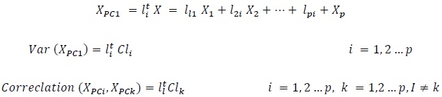 El ACP se calcula por medio de las combinaciones lineales no correlacionadas de los datos originales y se clasifican por sus variaciones en orden descendente XPC1, XPC2,… XPCX .