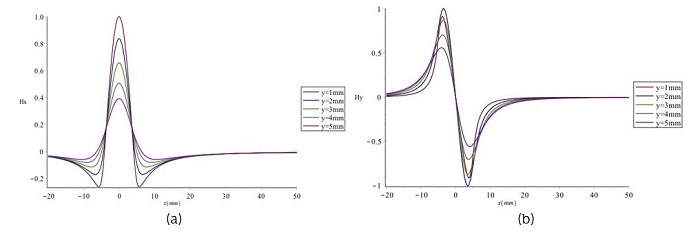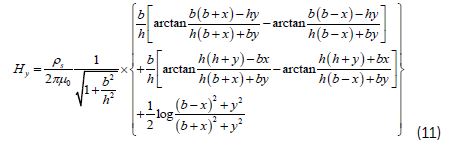 Del artículo citado anteriormente, se llevaron a cabo las siguientes ecuaciones correspondientes a la componente tangencial Hx (Ecuación 10) y normal Hy (Ecuación 11):