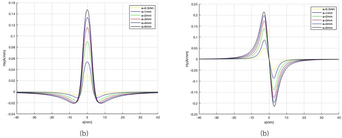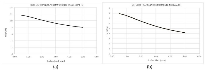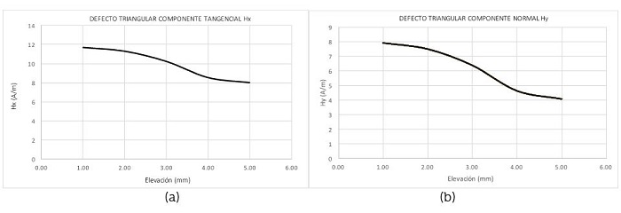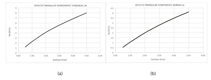 A continuación, se muestran las gráficas del análisis que se obtuvieron de la distorsión del campo magnético en defectos triangulares a través de las ecuaciones (5) y (6), reportadas por Leng et al. (2013) .