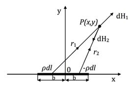 La intensidad de campo magnético total en las direcciones x e y del punto P se puede obtener por (Leng et al., 2013):