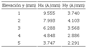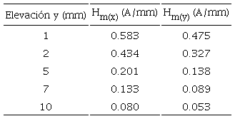 De las Figuras 7a y 7b se obtienen los datos para la Tabla 3, que describe la influencia cuantitativa de la variación de la elevación con respecto a la zona de concentración de esfuerzos en los parámetros característicos de la señal magnética, con respecto a la componente tangencial Hm(x) y la componente normal Hm(y).