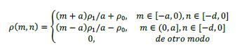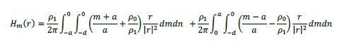 donde ρ1+ρ0 es la densidad máxima de carga magnética de superficie (SMC, por sus siglas en inglés) y ρ0 es la densidad mínima de SMC en la zona de concentración de esfuerzos, m denota el valor para el eje x en la zona interna de la región de concentración de esfuerzos, suponiendo que ρmax= ρ1 y ρ0. La distribución general puede proporcionar más opciones. Por ejemplo, ρ0=0 significa que la densidad máxima de SMC aparece en m=0, ρ1=0 significa que existe una distribución de SMC uniforme en el cuerpo de concentración de esfuerzos y ρ0= ρ1 corresponde al caso que la densidad máxima de SMC ocurre en los bordes m= ± α.