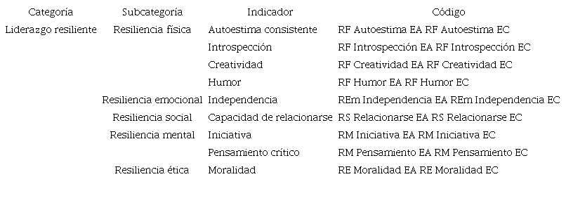 El liderazgo resiliente posee como características el enfrentamiento a la adversidad, motivación al logro, pensamiento estratégico y conceptual, actitud positiva, superación, capacidad de movilización de influencia y empatía (Ferrer & Caridad, 2017). La resiliencia mental simboliza la figura común contra las trabas a desafiar; la resiliencia emocional se da laborando con ecuanimidad, decisión, empatía y motivación al logro de lo establecido por la organización; la resiliencia social es cuidar las relaciones en la empresa, la convivencia organizacional, mantener las interrelaciones positivas y solidarias; la resiliencia ética, si se cumple, da la autoridad al líder, si se promueve la ética, el comportamiento será valioso; y la resiliencia física se traduce como el trabajo difícil entre adversidades y obstáculos y la capacidad de ejercitarse físicamente, relajarse, buenos hábitos de sueño y alimentación (Ozmusul, 2017).