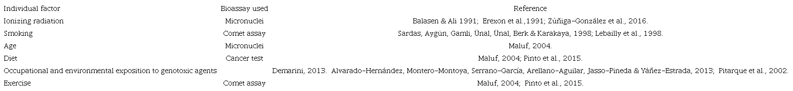 Human. Blood cells were chosen for this study because it has been shown that this type of cells offers advantages for monitoring the effects of genotoxic agents (Faust et al., 2004). In this sense, 10 human participants over 18 years of age (six males and four females) responded to a questionnaire to rule out exposure to genotoxic agents. Individuals on medical treatment, smokers, drug users, and residents of the polluted area of Guadalajara, Jalisco, México, were excluded from the study. In Table 1, individual factors that can induce genetic damage are shown. As negative controls, blood samples from young people with the best indicators mentioned in the previous questionnaire were used. For the preparation of human lymphocytes, peripheral blood samples were obtained by finger puncture from participants. Each blood sample (100 μl) was placed in a test tube containing 4 ml of phosphate-buffered saline (PBS) (160 mM NaCl, 8 mM Na2HPO4, 4 mM NaH2PO4, and 50 mM EDTA, pH 7) and immediately centrifuged at 3000 rpm for 5 min. The supernatant was removed, and the pellet was suspended in phosphate buffer and immediately stored at 4 °C until used. Both positive and negative control groups for monitoring were used as recommended by Møller et al. (2020).