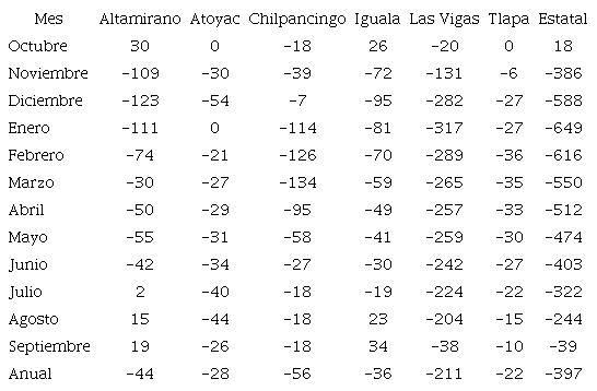 A nivel regional, la situación es casi la misma que se observa en el estado. La mayoría de las regiones presenta excesos de demanda de almacenamiento en la mayor parte de los meses del año, lo cual indica que la capacidad de almacenes es insuficiente para cubrir la demanda por almacenamiento. Incluso Iguala, que tiene la mayor capacidad almacenada, no cuenta con la infraestructura suficiente para almacenar el maíz que un programa óptimo de inventarios requiere. En Iguala solo en tres meses la capacidad de almacenes es mayor a la demanda de almacenamiento, y en los restantes nueve meses se presentan saldos negativos, lo que indica la existencia de infraestructura insuficiente.