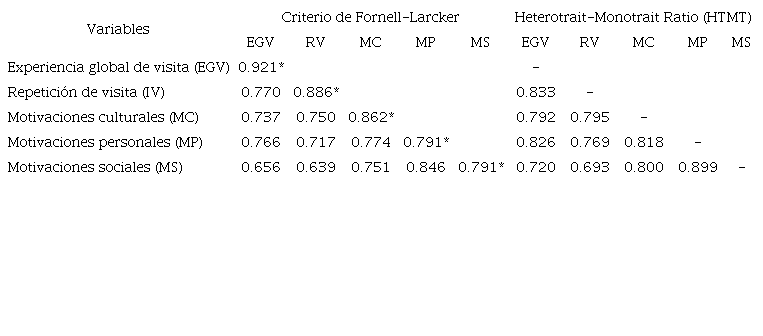 En la evaluación del modelo de medida, la consistencia interna es satisfactoria, ya que el alfa de Cronbach, el rho_A y la fiabilidad compuesta de las variables presentaron valores superiores a 0.700 (Nunnally & Bernstein, 1994). Asimismo, se cumplió con la validez convergente al reportar valores de la varianza media extraída (AVE, por sus siglas en inglés) mayores a 0.500 (Hair et al., 2017) (Tabla 3).