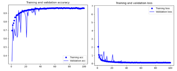 Data augmentation techniques can be divided into two types depending on the execution time. The first type consists of running desired transformations before training process. This is known as offline augmentation and is normally applied in small datasets. Here the dataset will be increased before training by a factor equal to the number of transformations. The second type is called online augmentation. Transformations are performed at the time of training the model, applying techniques such as rotation, zoom, crop, among others. Online augmentation increases the variability of the input images, so that the model will never see the exact same picture twice during the training phase providing higher robustness to the model (Gutierrez et al., 2019). This also helps expose the model to more aspects of the data and generalize better. This research used online data augmentation approach applying the following techniques and parameters: rotation range in 35 degrees, width shift and height shift in 5%, zoom range in 10%, shear range in 10%, brightness range in 15%, and fill mode constant in black color.