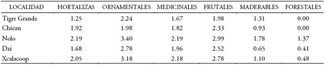 Una característica de los huertos familiares en las localidades de interés es la diversidad de especies vegetales en él (Cuadro 2), así como la cría de diversas especies animales, que permite definir las estrategias de vida y cooperación definidas por Ellis (1998), relacionadas con la subsistencia de la unidad familiar, que incluye tanto las actividades económicas de sus integrantes, como la producción y disponibilidad de alimentos, garantizando así el recurso como estrategia de conservación, lo anterior se confirma con lo expresado por Bassullu y Tolunay (2010) en huertos familiares de Turkia y Jarvis et al.,(2011) en India.