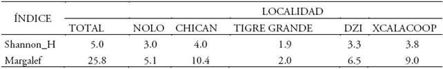 Con relación al segundo sistema de producción familiar, la milpa, que garantiza parte de la disponibilidad de alimentos, se obtiene de él, principalmente maíz, frijol y calabaza. Lo anterior confirma los trabajos realizados por Cruz (2013) en Paso de Ovejas respecto a la distancia de los mercados y el acceso a los alimentos, Veracruz. Los índices de diversidad y riqueza de especies vegetales en la milpa se presentan en el Cuadro 4.