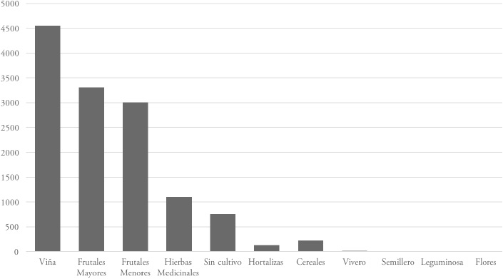 Al analizar solo la superficie cultivable4 se observa que las principales orientaciones productivas orgánicas son frutales, tanto mayores como menores, que en conjunto representan el 48% de la superficie seguido de viñas (35%) orientada a la producción de vinos, lo que refleja el dinamismo de estos mercados (Grafico 1). En el cultivo de frutales mayores destacan manzanos (33,4%), olivos (27%), paltos (14,2%) y kiwi (12,5%). En cuanto a los frutales menores se encuentran los berries (arándanos y frambuesas representan ambos más del 90%). Con todo, la importancia relativa de la agricultura orgánica en Chile es baja, representa solo el 0,5% de la superficie agraria total. Es de mencionar que la especialización orgánica responde a las principales orientaciones productivas del modelo agroexportador chileno basado, principalmente, en la producción frutícola (Ríos, 2013).