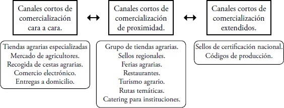 Esta investigación se ha realizado sobre la base de una metodología mixta articulando el enfoque cuantitativo con el cualitativo. El primero se centra en aplicar la óptica del estructuralismo económico, través del análisis de fuentes estadísticas disponibles, donde se realiza un análisis estructural de la agricultura orgánica en Chile. Este considera como unidad de estudio el sistema y las relaciones recíprocas que existen entre el todo y sus partes. En este sentido, se asume que la realidad está compuesta por estructuras (Berzosa et al., 2001) que soportan los fenómenos económicos. Aquí, se aplican las principales categorías de análisis de la teoría agroalimentaria (McMichael, 2009) para describir y explicar la evolución que ha tenido el sector orgánico en Chile en los últimos años. En este momento se caracteriza el contexto socioeconómico y político donde se desarrolla la iniciativa a investigar. El segundo enfoque desarrolla un estudio de caso basado en la experiencia de una asociación de pequeños agricultores denominada Red de productores orgánicos de la región de Los Lagos, en el sur de Chile. Se analizará esta experiencia utilizando las dos dimensiones propuestas por Renting, Marsden y Banks (2003). La primera, relacionada con la estructura organizacional y los mecanismos específicos que operan para articular las relaciones de producción y consumo. Esta dimensión profundiza en los diferentes mecanismos que existen para extender las cadenas agroalimentarias alternativas a través de tres categorías. Canales cortos de comercialización cara a cara, canales cortos de proximidad y canales cortos extendidos (Figura 1).
