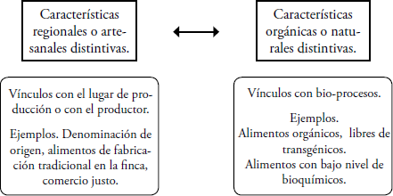 La segunda, relacionada con las definiciones de calidad que operan en la conformación de cadenas agroalimentarias alternativas y las características distintivas de los sistemas de producción dadas por la diferenciación del lugar de producción o por un manejo productivo relacionado con los bioprocesos (Figura 2).
