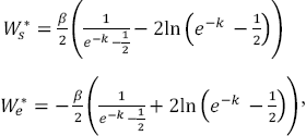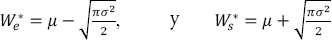 [7]Las expresiones (6) y (7) son las soluciones del modelo de Farber, que se cumplen para cualquier función de densidad fx(x). En particular, Farber considera que las decisiones del juez son imparciales, que representa por una distribución Normal. Cuyas ofertas de equilibrio de Nash We* y Ws* son: