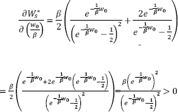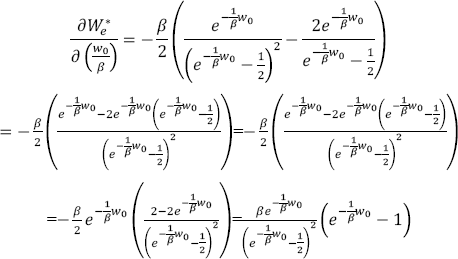 Teorema 2. Suponga que la distribución de salarios en la Ciudad de México se distribuye de manera exponencial como se muestra en (1), con media β. Además, suponga que el 50% de la población percibe un salario entre w0 y y que se está analizando las decisiones finales del órgano rector bajo equilibrio, así, de las soluciones de equilibrio (10.a) y (10.b), se tiene que: