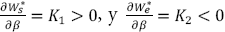 Debido a que el factor, es siempre positivo, el signo de nos lo dará el termino , pero ya que (por (a)), , por lo tanto , y así . Con esto, cada que el salario porcentual aumenta, las empresas recuperan este aumento, al disminuir el salario de equilibrio que otorgan.