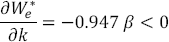 [11.b]Por ejemplo, si la proporción disminuye, esto es Δk < 0 , entonces, y . Lo que implica que el sindicato opta por un salario menor y la empresa tendría que fijar un salario más alto, esto es, hay un efecto negativo para ambos.