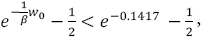 Así, al tomar logaritmos en ambos lados de esta expresión se obtiene que, , y finalmente, w0 < -0.1417 β . QED