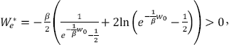 [12]Así, si se cumple la condición anterior, es suficiente para que la empresa fije salarios positivos. Por ejemplo, un valor de w0 = 0.5 β cumple con (12), sin embargo en el inciso (b) se mostró que no se pueden fijar salarios por encima de 0.1417 β . Esto es, no hay condiciones en general para fijar salarios positivos para la empresa. QED.
