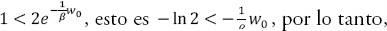 Demostración. Si ,entonces w0+(ln(2)-1)β > 0, esto implica que w0 > (1-ln(2))β. QED.