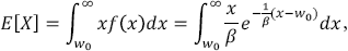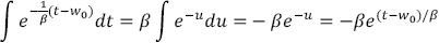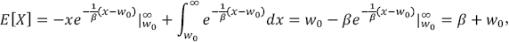 Demostración. En la expresión , note que esta es siempre mayor o igual a cero para todos los valores de x ≥ w0. Además, "sumando" todas las probabilidades para los valores de x, con w0 ≤ x, se cumple que, . Así, se cumplen los supuestos de una función de densidad. Ahora, si se u = (tw0)/β se obtiene que du =dt/β. Por lo tanto