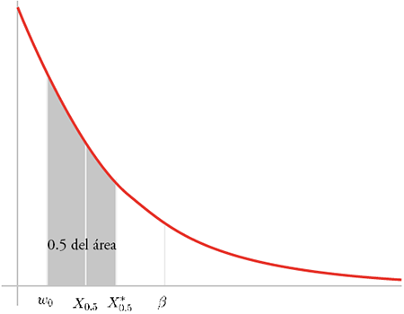 Con esta expresión se puede encontrar la me diana M de X -w0, solo basta hacer F(M) =1/2. Resolviendo dicha ecuación se obtiene que