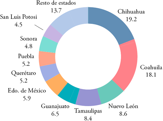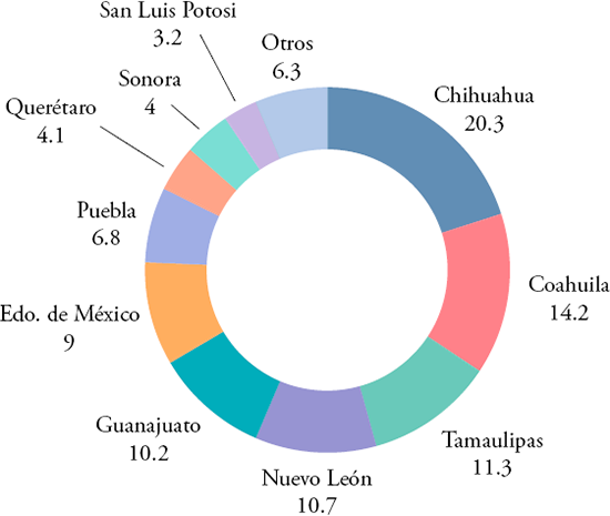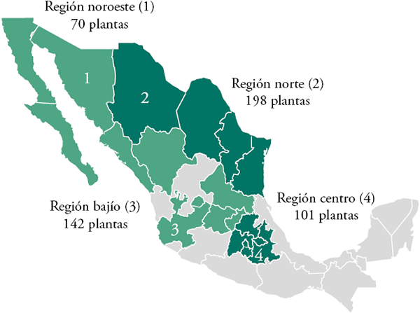 En este estudio nos preguntamos por los factores que puedan explicar el desarrollo regional desigual que ofrece la IAM. Es una pregunta oportuna, pues la explosión productiva actual de ésta, con tasas de crecimiento de 6 a 8 anual, convierte al país en un caso a modo para re-explorar esta interrogante que, desde el siglo pasado, se ha formulado en las teorías económica y social. En efecto, el dinamismo sin precedente de la IAM desde la última crisis global de 2008-2009 se expresa en nuevas aglomeraciones económicas, pero también en acrecidas diferenciaciones regionales.