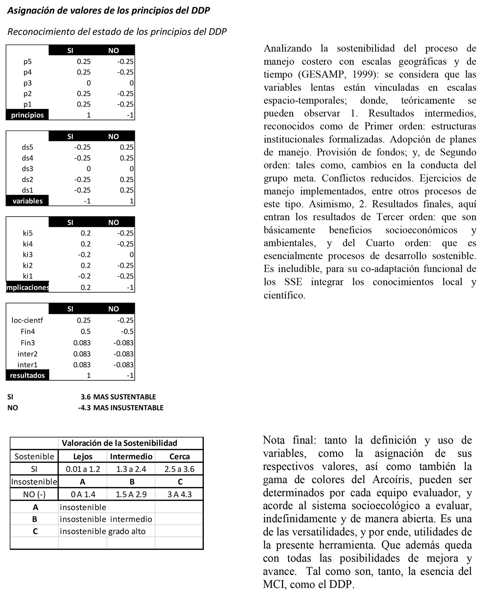 El análisis de la sostenibilidad costera a través del DDP se desarrolló de la siguiente manera: se analizaron los principales elementos del sistema costero ZPN, describiéndolos como SSE identificados, utilizando los principios del DDP (ver anexo 1).