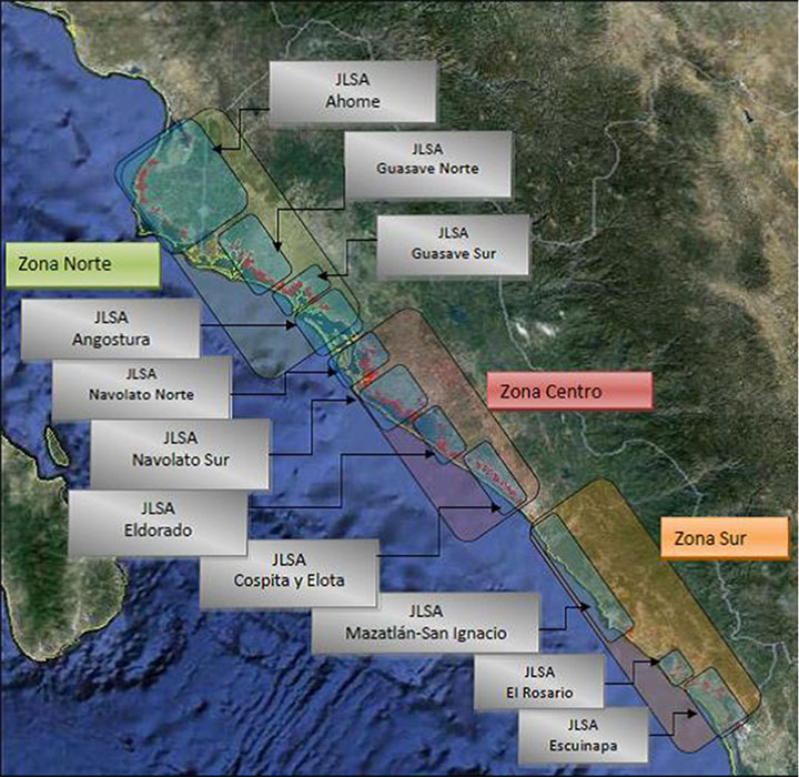 La JSL de Ahome es la región más relevante en cuanto a la aportación a la producción de camarón de cultivo del Estado de Sinaloa. Fue en el año de 1983 que la acuicultura trasciende gracias que, en el municipio de Ahome, Sinaloa, se logra obtener las primeras cosechas de camarón a nivel comercial. La región se posicionó así como la más destacada en cuanto a la aportación en producción de camarón de cultivo para el estado de Sinaloa. La región cuenta con aproximadamente 7,200 hectáreas de producción; es el municipio que más costas posee (alrededor de 120 km de litoral) y genera, en algunas microzonas de producción acuícolas alrededor de 2,689.04 empleos. Se benefician aproximadamente 20,849 habitantes, en zonas urbanas (ver figura 1).