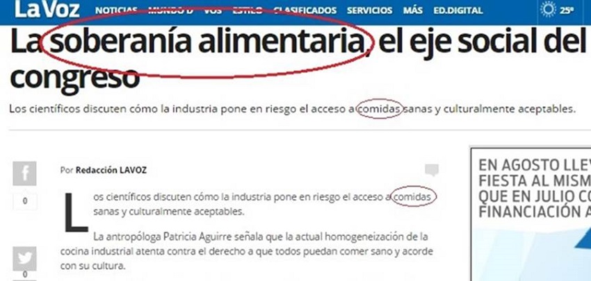 Keywords: contemporary food, food security, food sovereignty, critical discourse analysis, media coverage, Argentina.