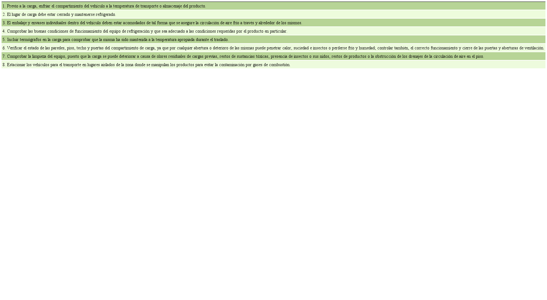 Cuando las distancias y los tiempos de traslado son amplios, y además los productos son susceptibles a altas temperaturas (como es el caso de Sonora), los vehículos deberán contar con medios adecuados para regularla. Asimismo, hay varias sugerencias a considerar para el transporte de productos alimenticios refrigerados (De León et al, 2004) (ver Tabla 1).