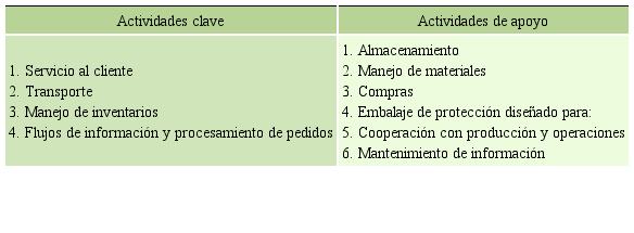 Según este autor, la logística se divide en actividades clave y actividades de apoyo, donde se ubica el transporte, mismo que representa el elemento individual más importante en los costos de logística para la mayoría de las organizaciones (ver Tabla 3). Se ha observado que el movimiento de carga absorbe entre uno y dos tercios de los costos totales de logística. Por ello, el responsable de logística necesita comprender bien los temas de transportación (Ballou, 2004).
