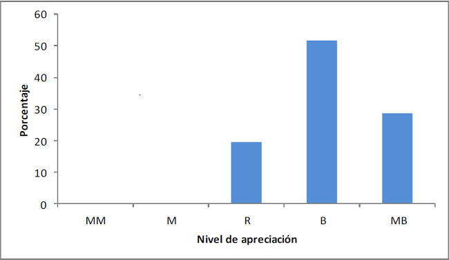Un porcentaje aceptable de los productores tiene una buena o muy buena apreciación de los efectos principalmente de los estiércoles (58.6 %). Los encuestados, en su totalidad, se muestran conscientes de las ventajas de utilizar productos orgánicos en sus suelos y cultivos, ambos beneficios son mencionados frecuentemente por las personas entrevistadas y otros más se refieren a ellos como "productos que no enferman" y que "dejan el suelo bonito".
