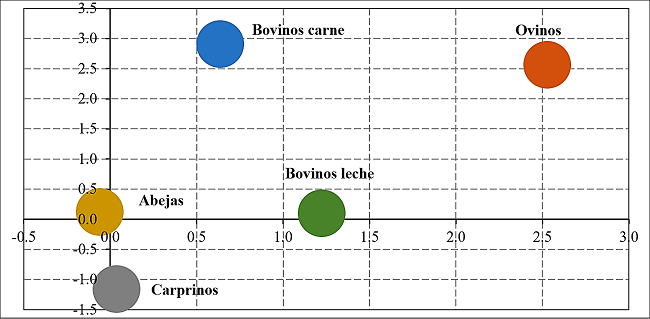 En los índices de segundo nivel los cambios son reducidos, aunque un poco más notorios en apicultura y caprinocultura, actividades dominadas por los sistemas tradicionales. El resto de las especies-producto muestran resultados marginales, lo que resalta la importancia de que los subsidios se expresen en cambio tecnológico y aumento de productividad.