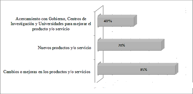 Results: Innovation types adopted by companies are related to process and marketing; on the other hand, organizational innovation shows the least acceptance. The main motivation to make innovations was to satisfy needs imposed by demand.