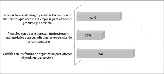 En relación a los cambios detectados en la dimensión organizativa de las innovaciones consideradas estos resultaron de menor incidencia en las empresas analizadas, este fenómeno es similar al documentado por el PROCEI (2013) quienes coinciden al confirmar que la innovación de carácter organizativo obtuvo niveles más bajos en los rubros evaluados en Mipymes operantes en diversas entidades federativas mexicanas.