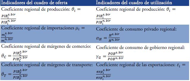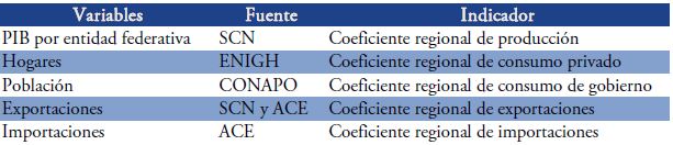 En ambos cuadros, el PIB estatal es la principal variable de regionalización y actúa como la cuenta de producción de referencia. A partir de estos datos se estima el coeficiente regional de producción,