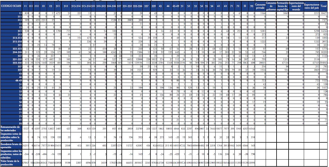 Objective: Elaborate a set of tables that constitute the input-output (IO) framework of Sonora in 2013.
