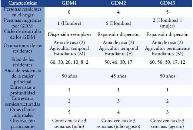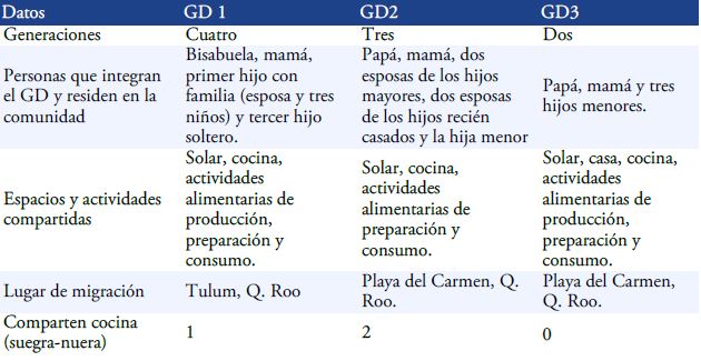 Todos los DGM analizados son extensos, es decir, son familias patrilineales hasta de cuatro generaciones que viven en un mismo solar compartiendo actividades productivas y de consumo.