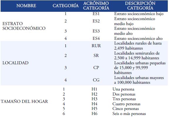 Limitaciones: La información socioeconómica que ofrece la fuente de información consultada es limitada, ello impidió caracterizar a mayor detalle los hogares, tampoco permitió analizar otros factores como el gasto, el consumo energético o las emisiones de gases de efecto invernadero.